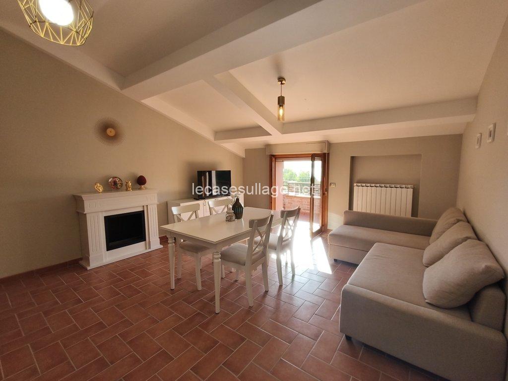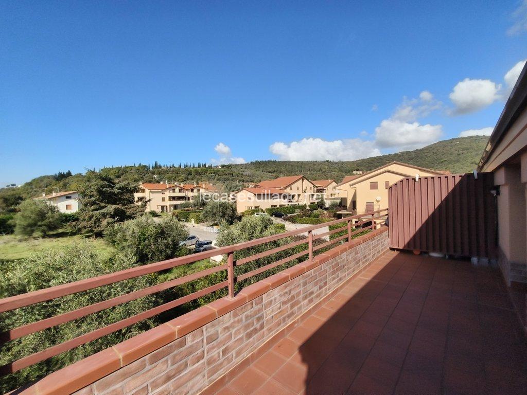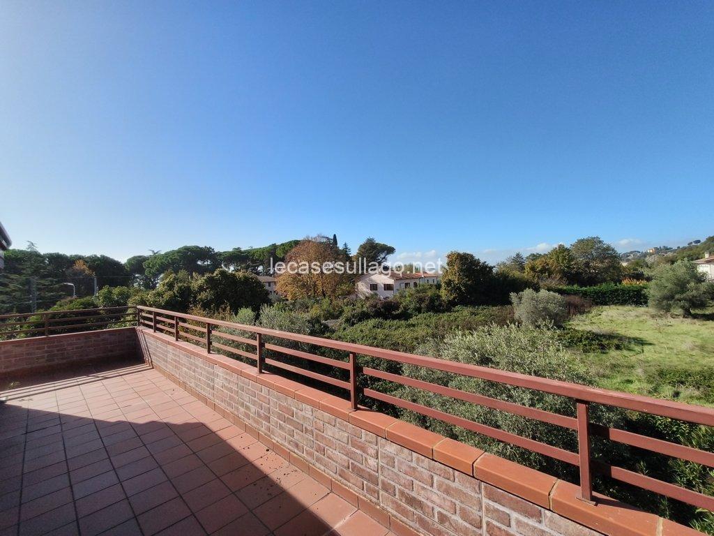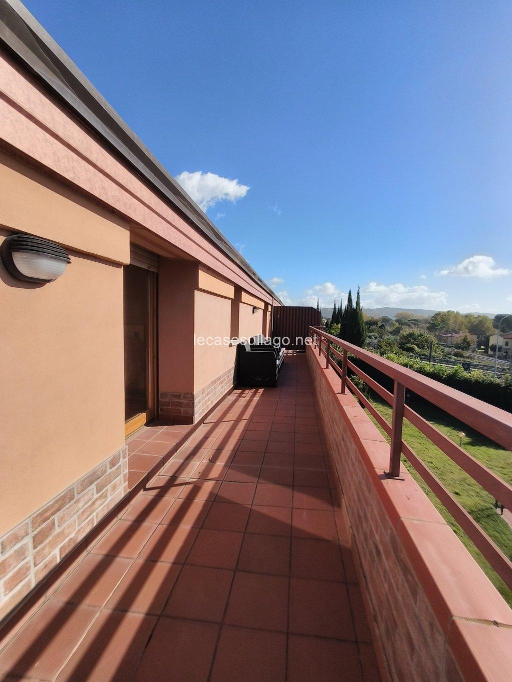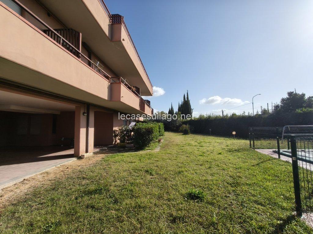 Nelle immediate vicinanze del bel centro storico di Passignano sul Trasimeno, in posizione riservata, molto panoramica e a pochi metri dal lago, proponiamo per la vendita un attico posto al secondo piano con ampia terrazza, ampio giardino condominiale con bellissima piscina recintata e posto auto coperto privato. L’attico, di 80 mq circa, è composto da un luminoso soggiorno con angolo cottura, un disimpegno, due camere matrimoniali ed un bagno con doccia. La terrazza di circa 25 mq che si sviluppa su due lati, può essere raggiunta sia dal soggiorno che dalle camere da letto grazie alle porte finestre, è finemente allestita con poltroncine ed ombrellone, insieme al giardino ben curato e all’ampia piscina condominiale di 12 x 5 ml  sono spazi ideali per vivere momenti all’aperto durante la bella stagione. Completa la proprietà un posto auto coperto esclusivo di circa 13 mq, posto al piano primo sotto-strada ed un ampio porticato comune. Questa deliziosa casa viene venduta completamente arredata, inclusa anche l’attrezzatura del terrazzo e della piscina. Ogni ambiente è caratterizzato da uno stile lineare dai toni delicati che dona armonia e pacatezza, di fatto una particolare attenzione è stata data alla disposizione, scelta del mobilio nonché dei materiali, una ricerca dei dettagli condotta dai proprietari con estremo gusto. Ottime finiture, sono presenti pavimenti in cotto nella zona giorno e parquet nella zona notte, porte in legno massello ed infissi in legno con doppio vetro. Tutte le altre utenze sono regolarmente allacciate alle reti pubbliche. Inoltre, l’appartamento dispone di acqua potabile fornita dal pozzo con impianto di filtraggio, riscaldamento autonomo a metano ed un elegante camino a bioetanolo atossico situato nel soggiorno. Cancello elettrico per accedere al condominio, il giardino è completamente recintato e illuminato.  L’immobile, in perfette condizioni manutentive, è abitabile fin da subito ed è situato in una palazzina edificata nel 1990, il cui il secondo piano è stato interamente costruito nel 2006. I costi condominiali ammontano a circa 69 € al mese e comprendono l’illuminazione esterna, la pulizia generale, la manutenzione delle aree verdi, della piscina e il consumo dell’acqua uso privato dell’appartamento. Il condominio è perfettamente mantenuto e ottimamente gestito. L’immobile volge a Sud – Ovest, con il lago e la pista ciclabile raggiungibile a piedi. Situato in un contesto gradevole e molto quieto, con comodo parcheggio libero e a pochi passi dai servizi locali dove è possibile trovare tutto ciò di cui si ha bisogno.