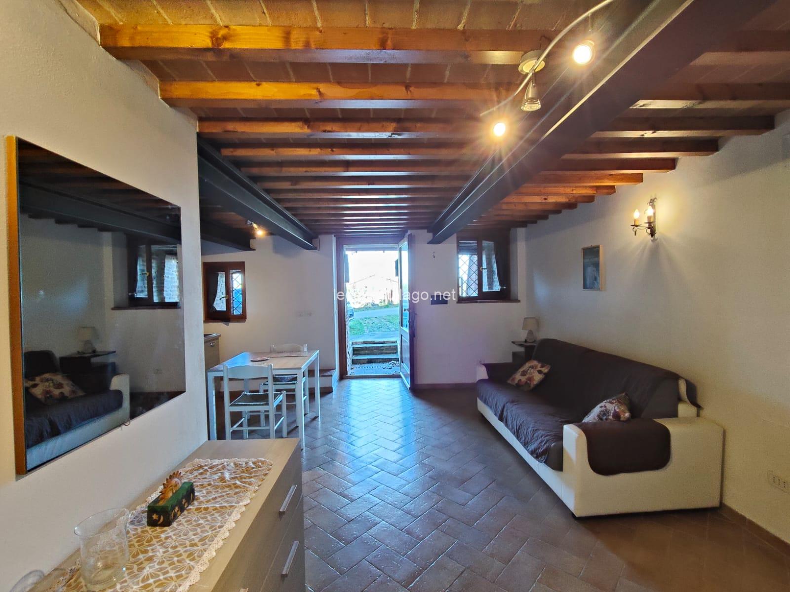 MONOLOCALE costituito da ingresso indipendente, unica stanza di circa 40 mq con divano letto, camino, angolo cottura e bagno con doccia. Riscaldamento con camino. Presente la linea telefonica. Utenze autonome. In ottime condizioni, arredato con mobili nuovi. Piccola rata di giardino ad uso condominiale non recintato. A circa 2 km dal centro storico di Paciano e nelle vicinanze della strada statale SS71. Contratti transitori a partire da un anno o contratti lunghi. Solo referenziati. Per ulteriori informazioni contattare il numero 3501623738.